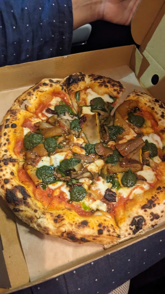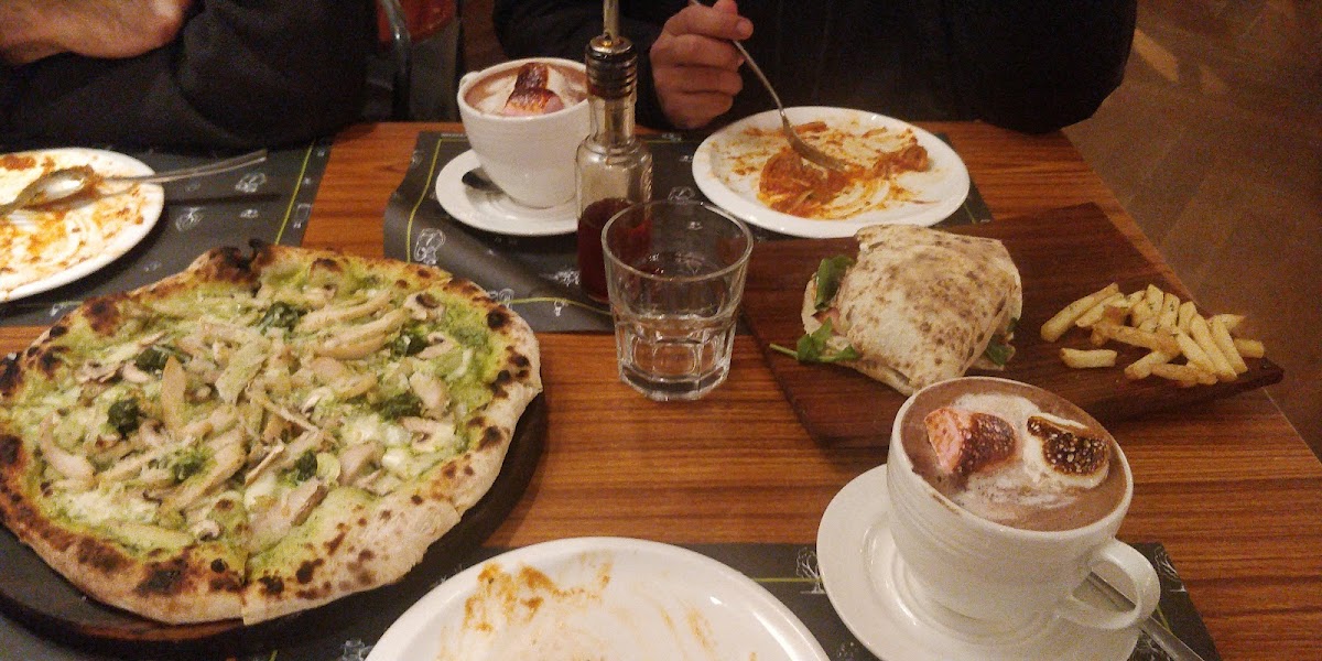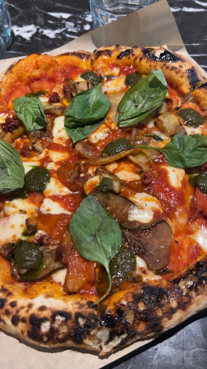 Must stop for pizza and salad lovers! Had a family style meal for 5 veg and nonveg people and all were amazed at the food quality. The burrata salad is a must try and the pizza is perfection out of the oven. Service was fast and they even had great coffee, the seating was comfortable I just think the atmosphere didn't match the quality of the food but thats a personal preference and its quite family friendly.